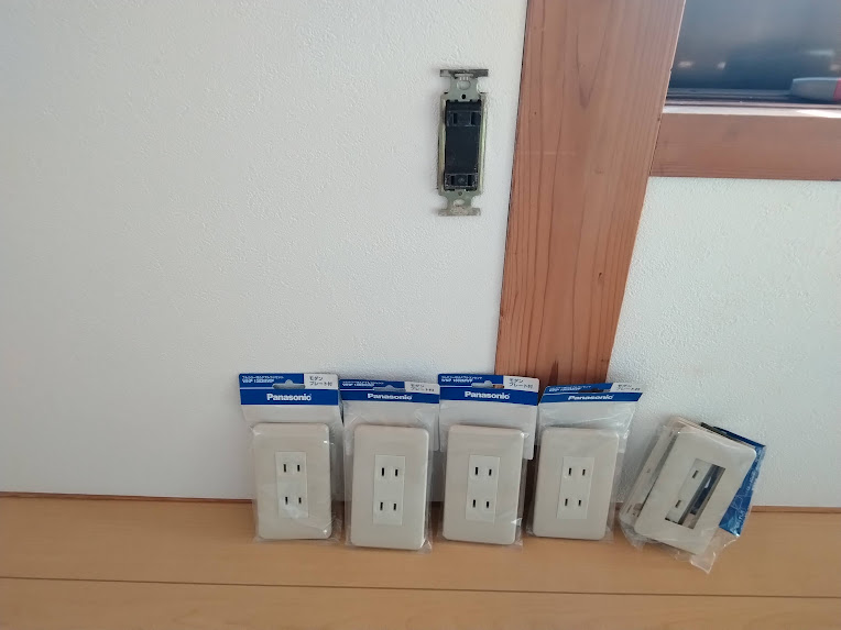古いコンセントから新しいコンセントへの交換作業(5か所)を行いました。