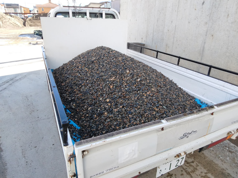駐車場の水はけが悪くなり、1t車両分の砂利敷き作業を行いました。